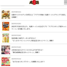 物語コーポレーションが運営するラーメンチェーン店の丸源ラーメンでは、オリジナルグッズが貰えるイベントや、公式Xアカウントのフォロー&リポストでアプリクーポンが当たるキャンペーン等を実施しています。