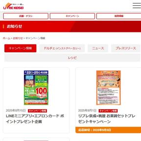 京成電鉄グループのリブレ京成は、千葉県と東京都を中心にスーパーマーケットを展開。WEBサイトのキャンペーン情報には、東京ディズニーリゾート ご招待キャンペーンや、Vマーク商品を含むお買い上げレシートで応募できるキャンペーンが掲載されていることがあります。