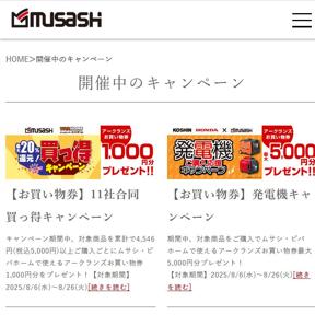 新潟県、石川県、富山県を中心に展開するホームセンタームサシでは、対象商品ご購入でアークランズお買い物券が当たるプレゼントや、抽選で楽天ポイントが当たるキャンペーンを開催しています。