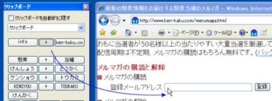 - クリップボードをデスクトップの隅に置いておけば、懸賞応募中もホームページの閲覧中も邪魔になりません