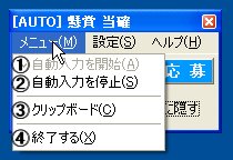 - 自動入力機能を開始させるには、メニューを開いて「自動入力を開始」をクリックしてください。
